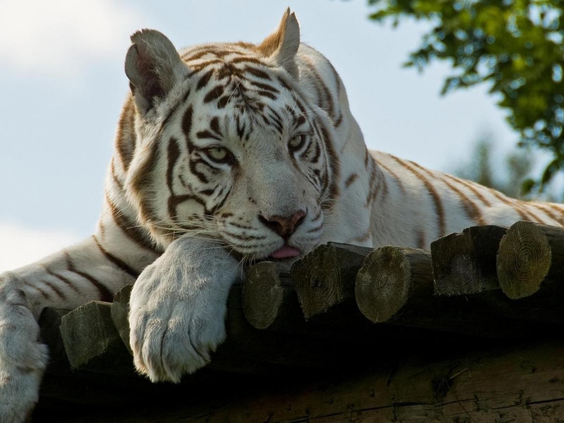 Обои Грустный белый тигр
