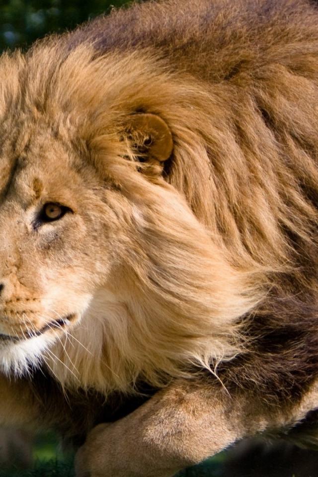 Обои Гривастый лев в прыжке