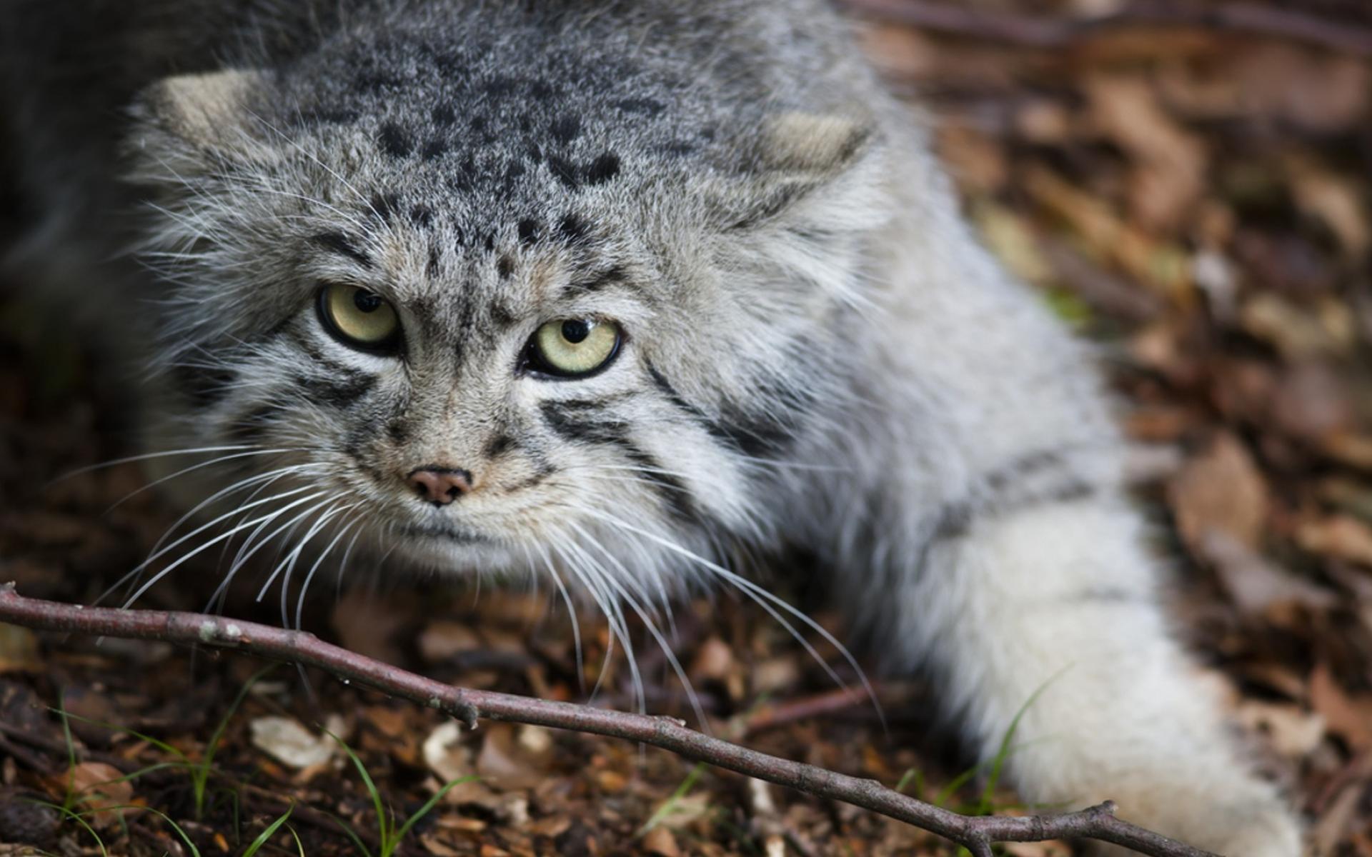 Обои Дикий кот крадется по земле