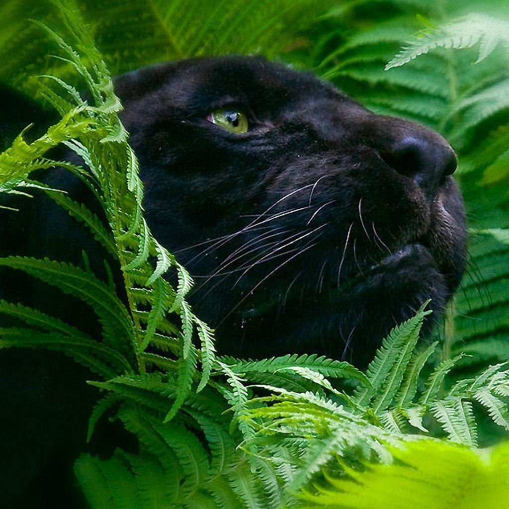 Обои Черная пантера в зеленых зарослях