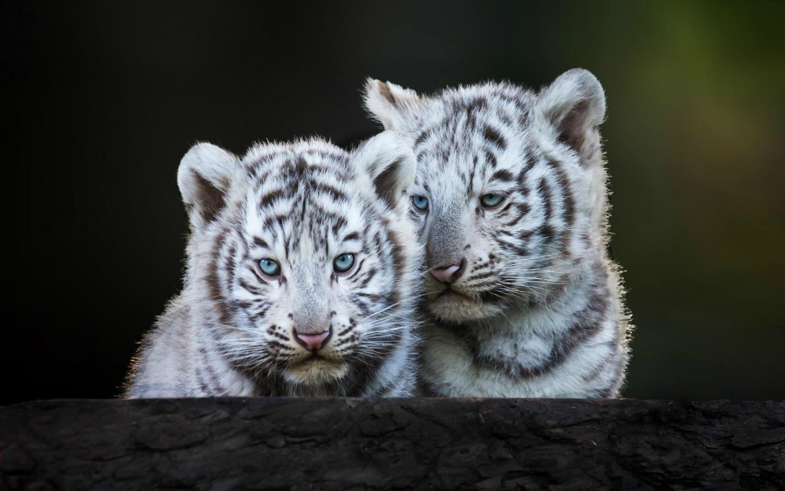 Обои Голубоглазые белые тигрята
