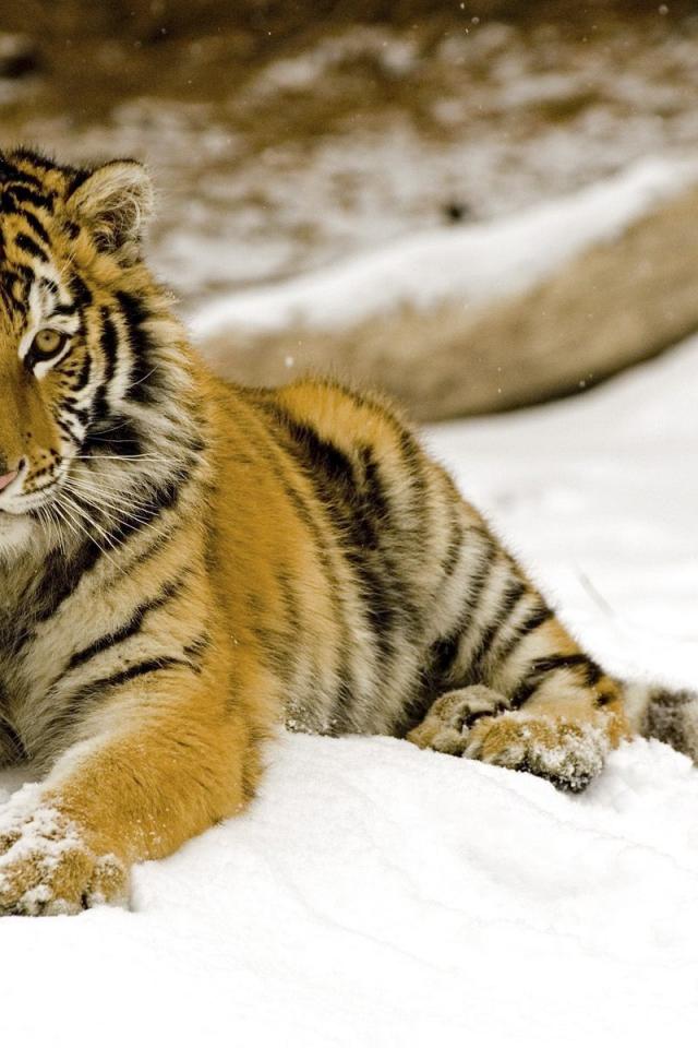 Обои Тигренок на снегу