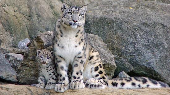 Обои Снежный барс с котенком