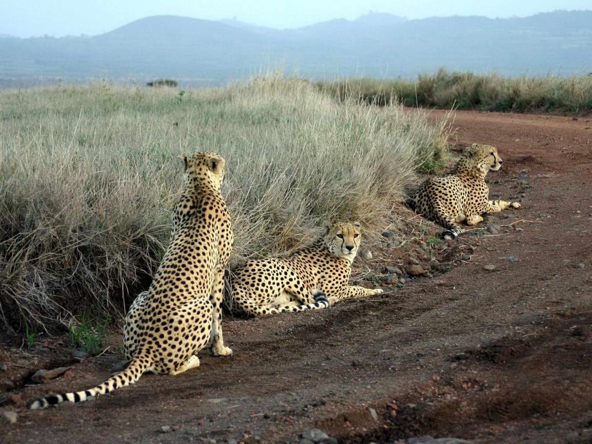 Обои Леопарды лежат на дороге