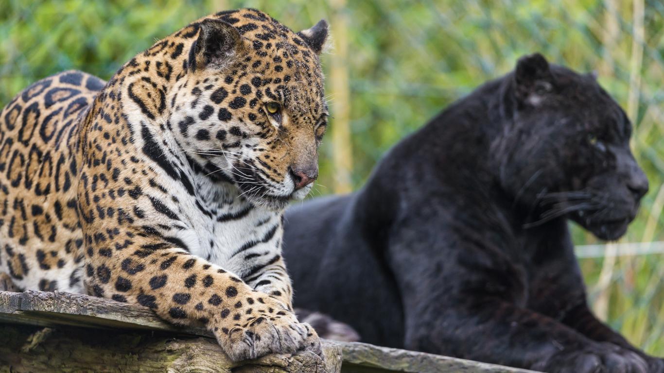 Обои Черная и пятнистая пантера