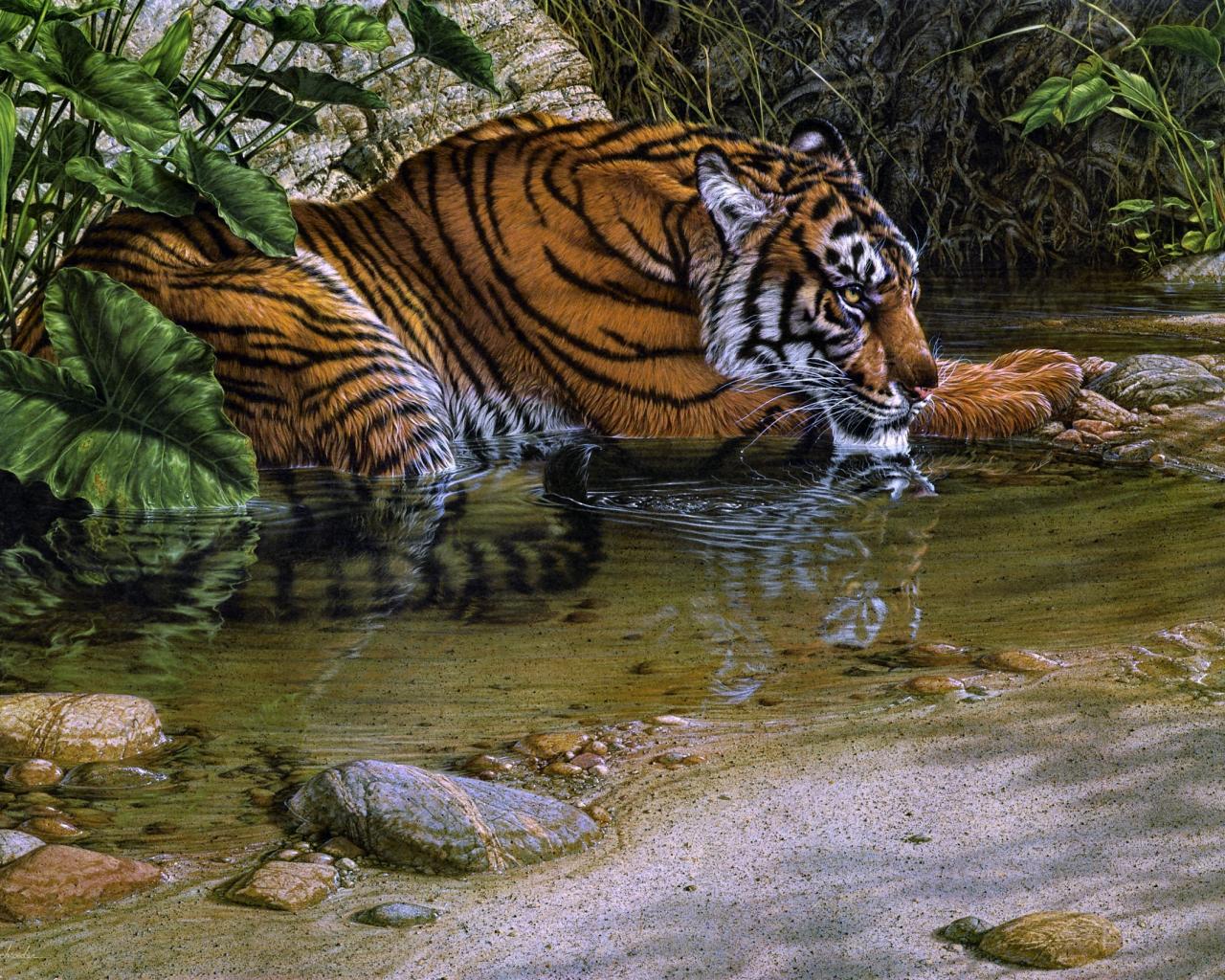 » Обои Трава, Вода, Камни, лежит