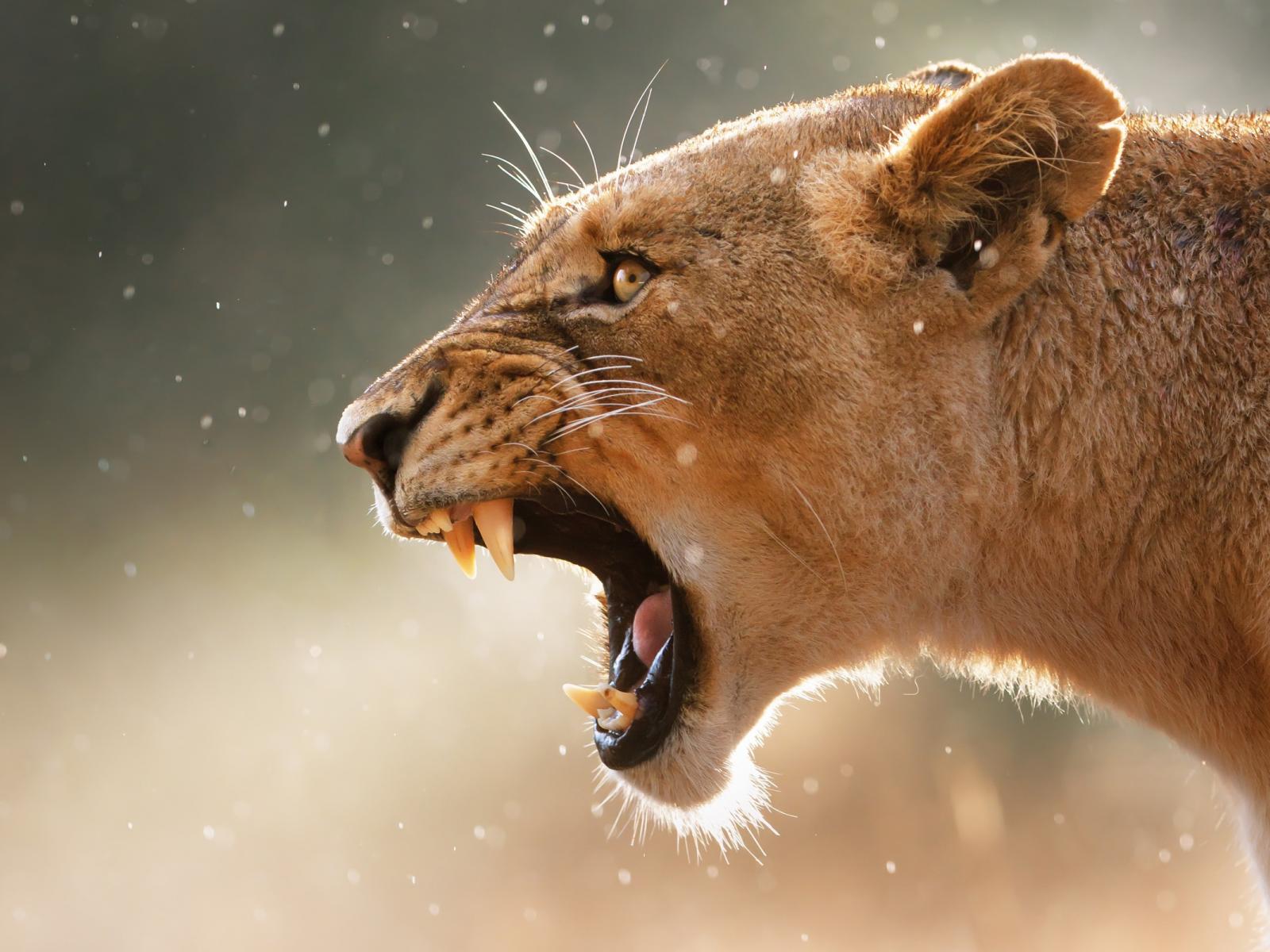 Обои Лев, Клыки, Пасть, Львица