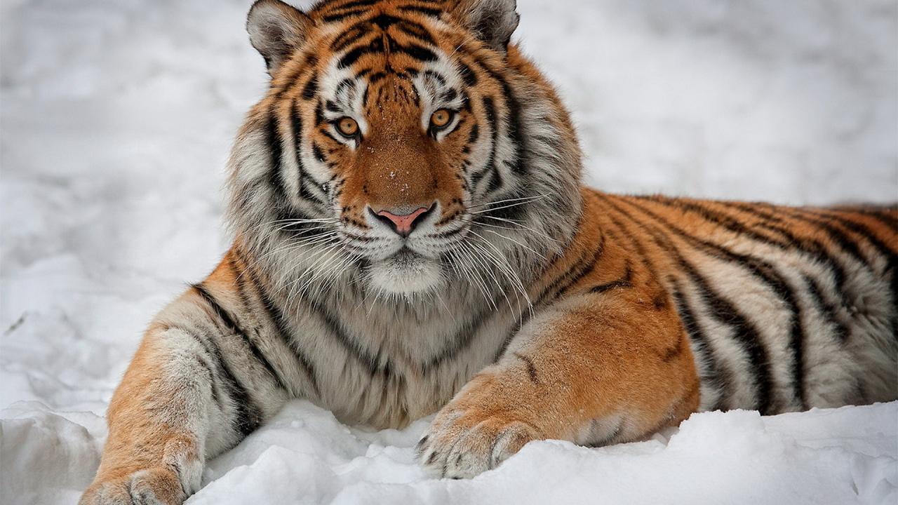 Обои Тигр на снегу