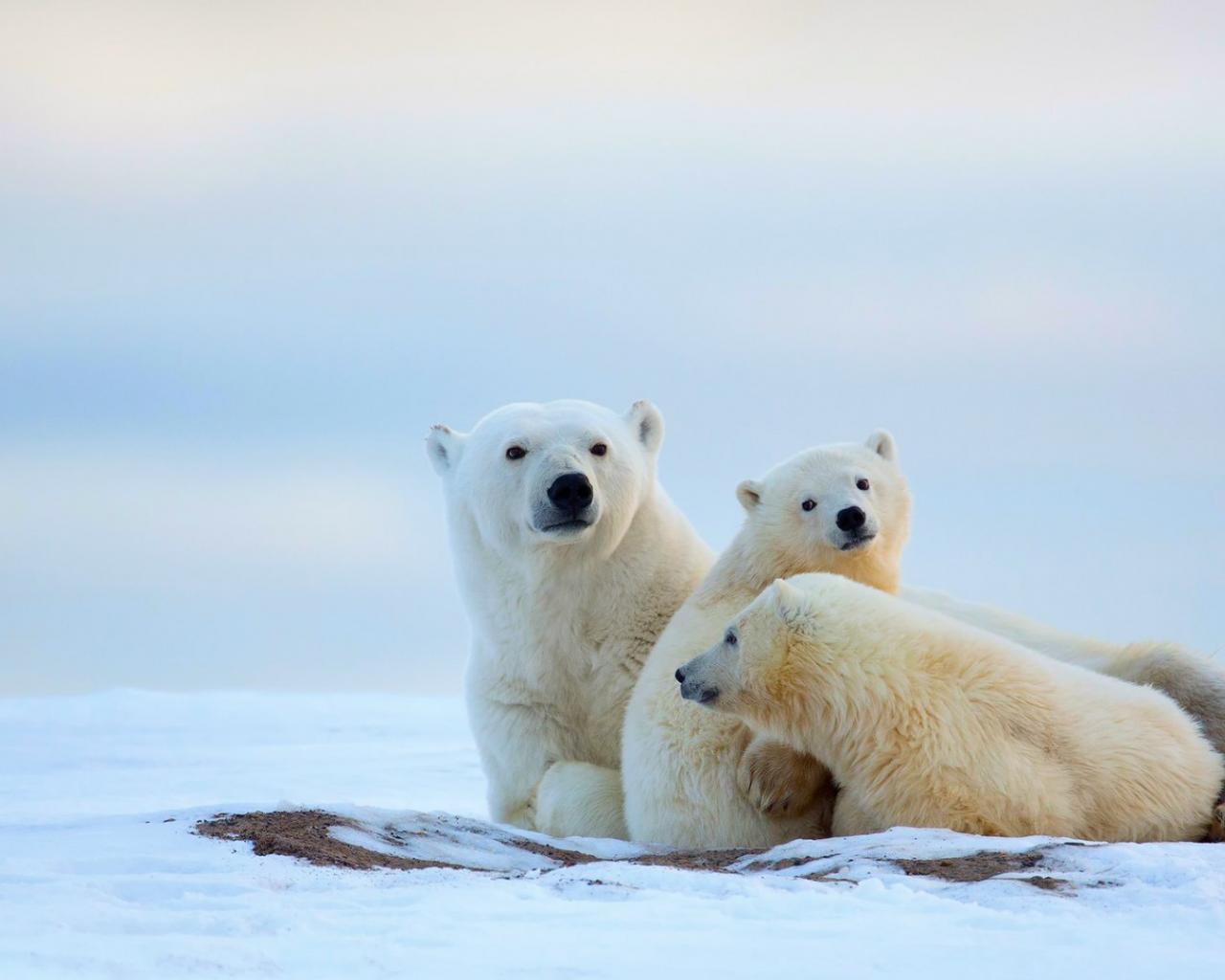 Обои Полярные мишки на снегу