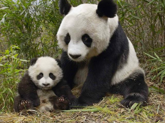 Обои Панда с маленьким детенышем