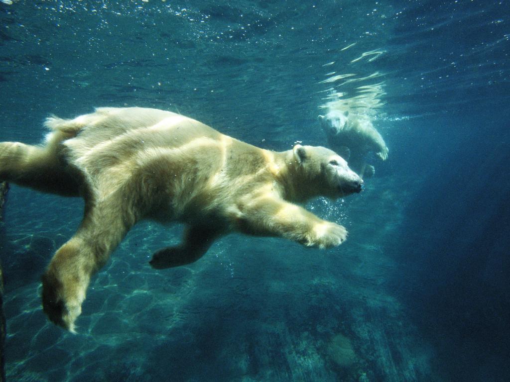 Обои Белый медведь плывет под водой