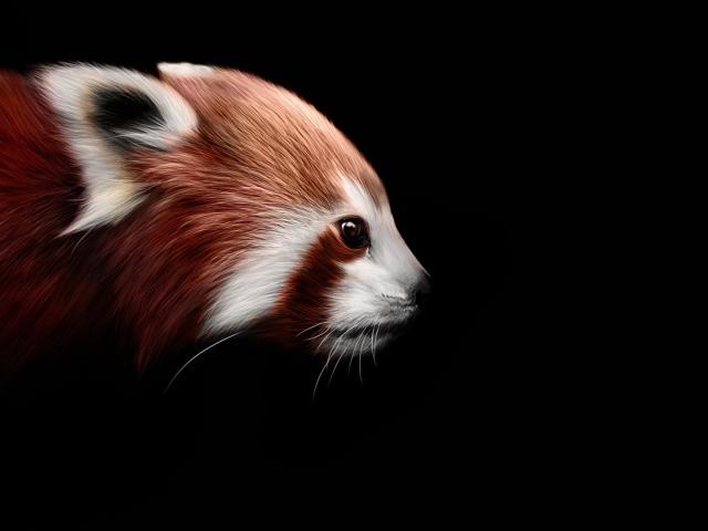 Обои Красная панда на черном фоне