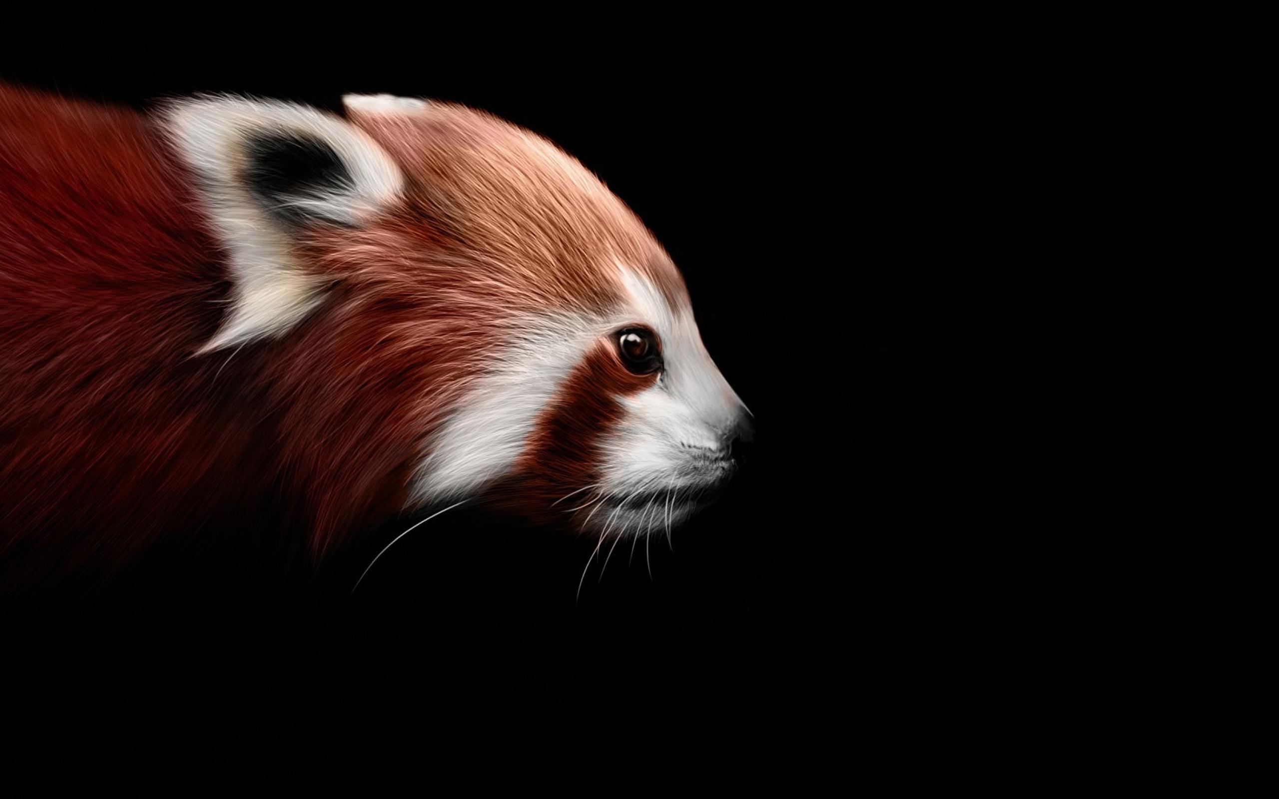 Обои Красная панда на черном фоне