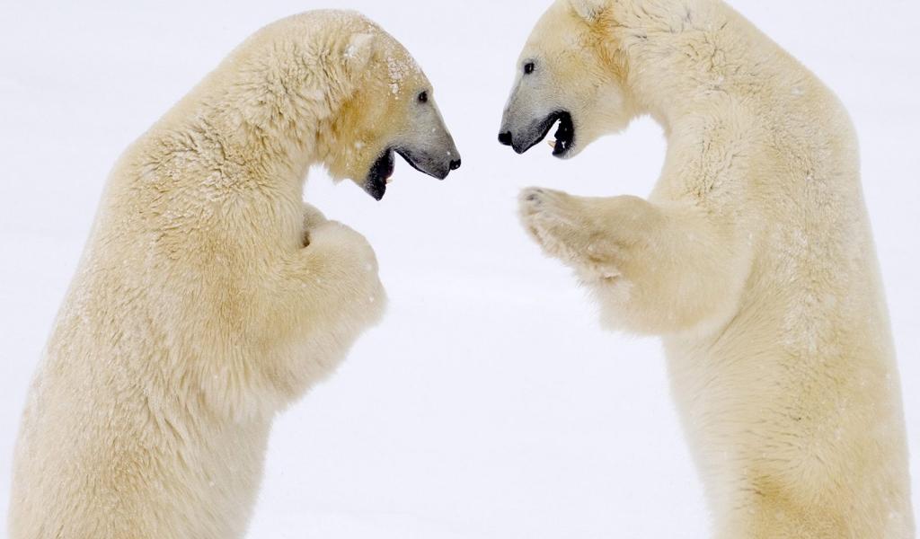 Обои Схватка белых медведей