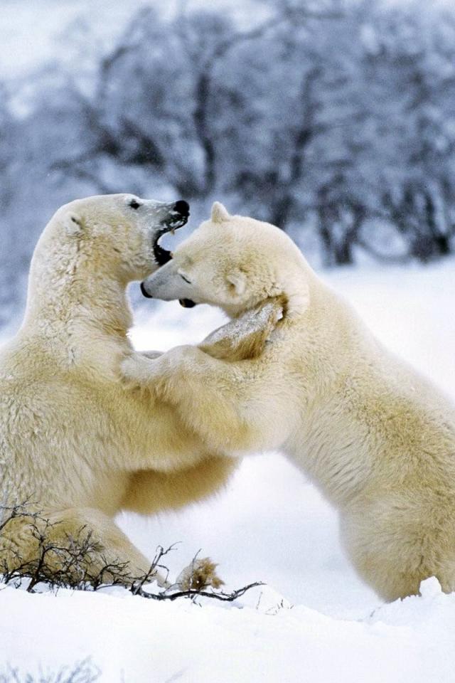 Обои Борьба белых медведей