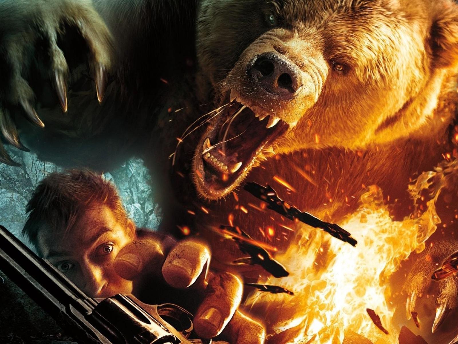 Обои Медведь нападает на человека