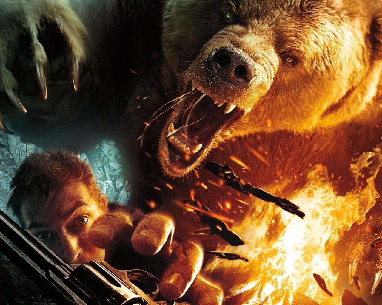 Обои Медведь нападает на человека