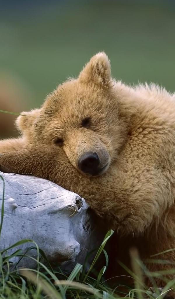 Обои Медведь около ствола