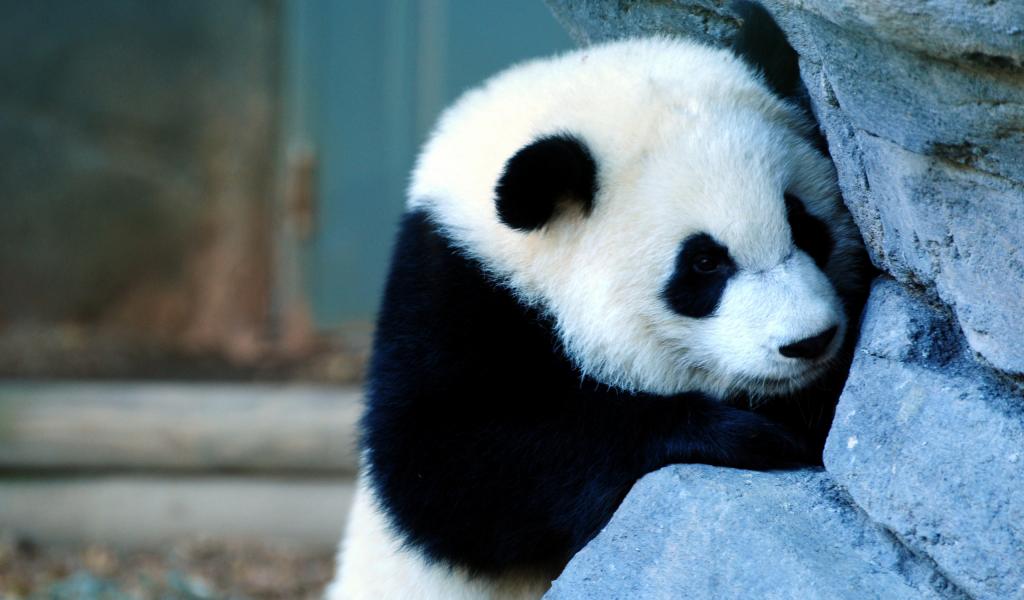 Обои Панда около камня