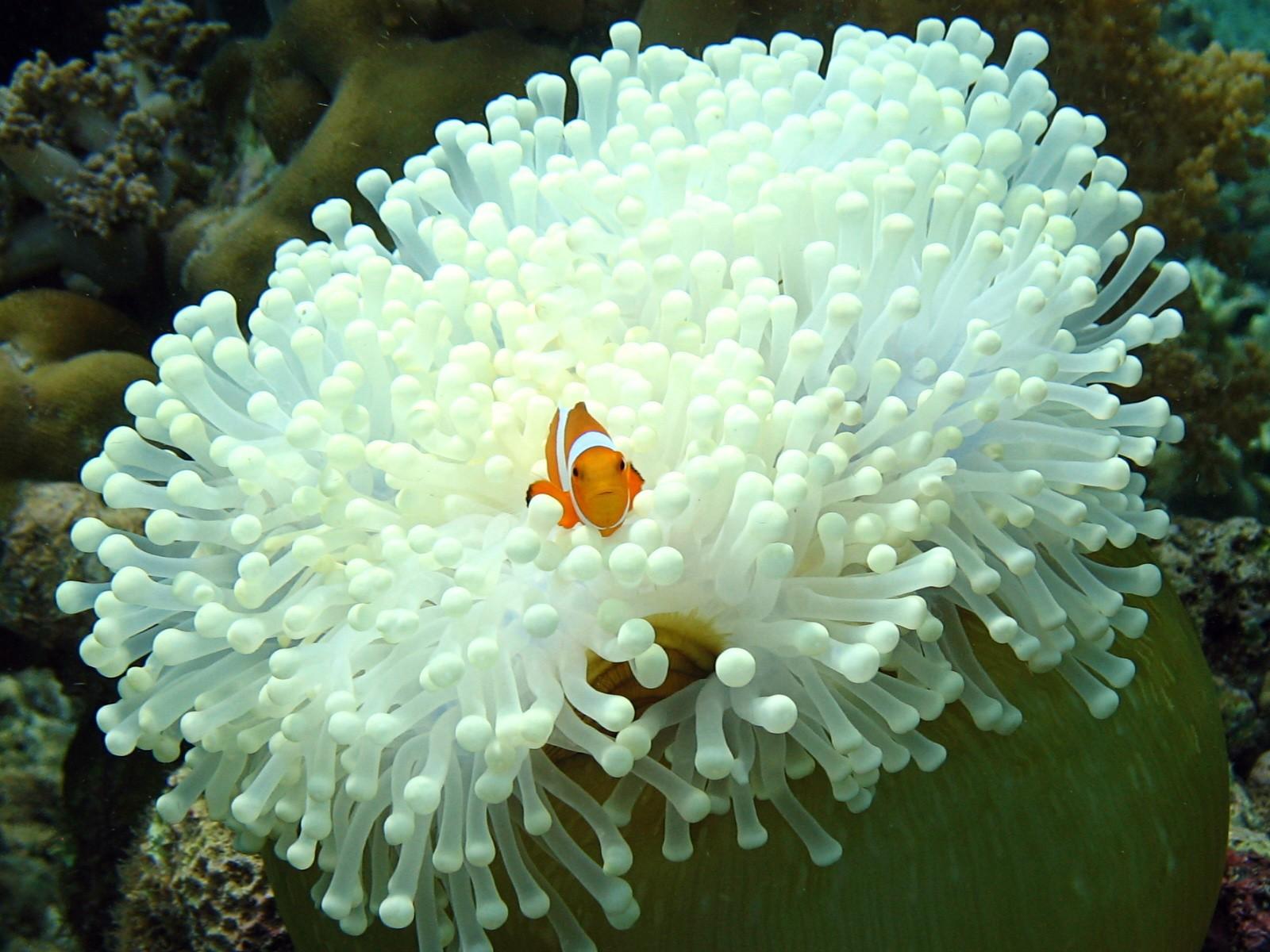Обои Рыба среди белых анемон