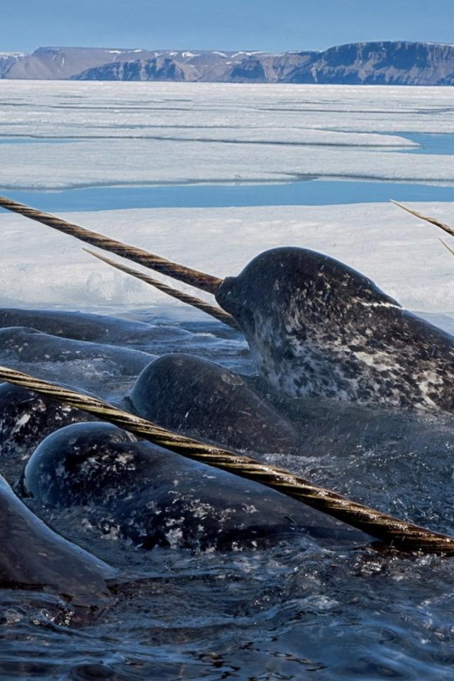 Обои Нарвалы среди льдов