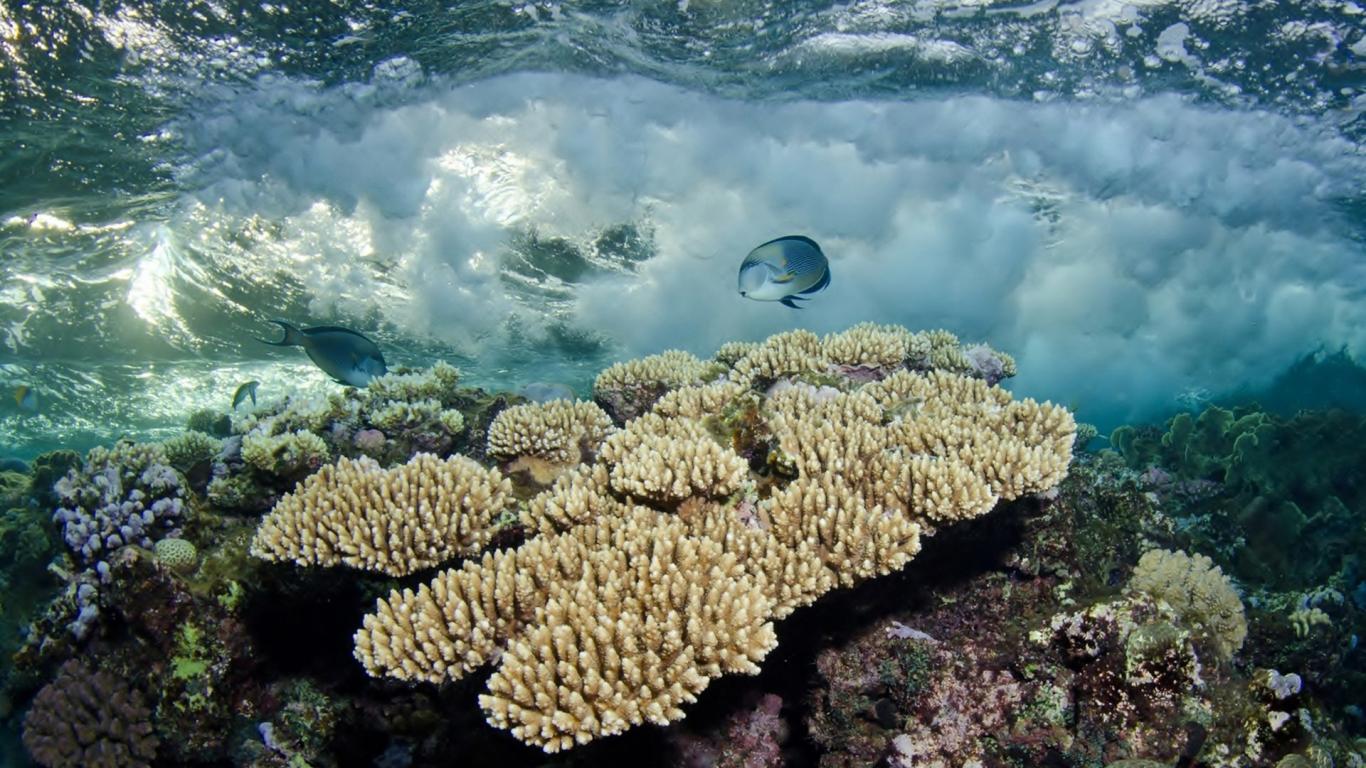 Обои Белые кораллы под водой