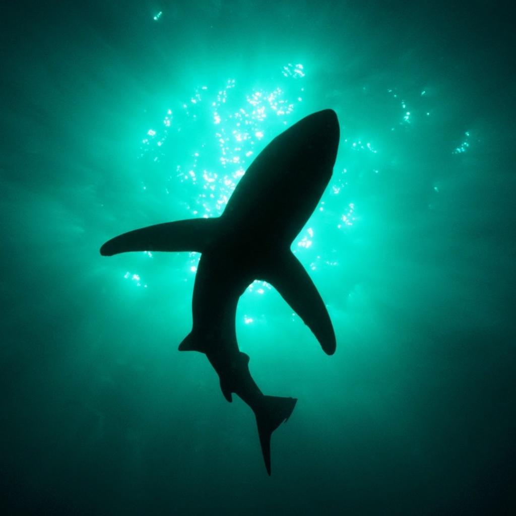 Обои Силуэт акулы под водой