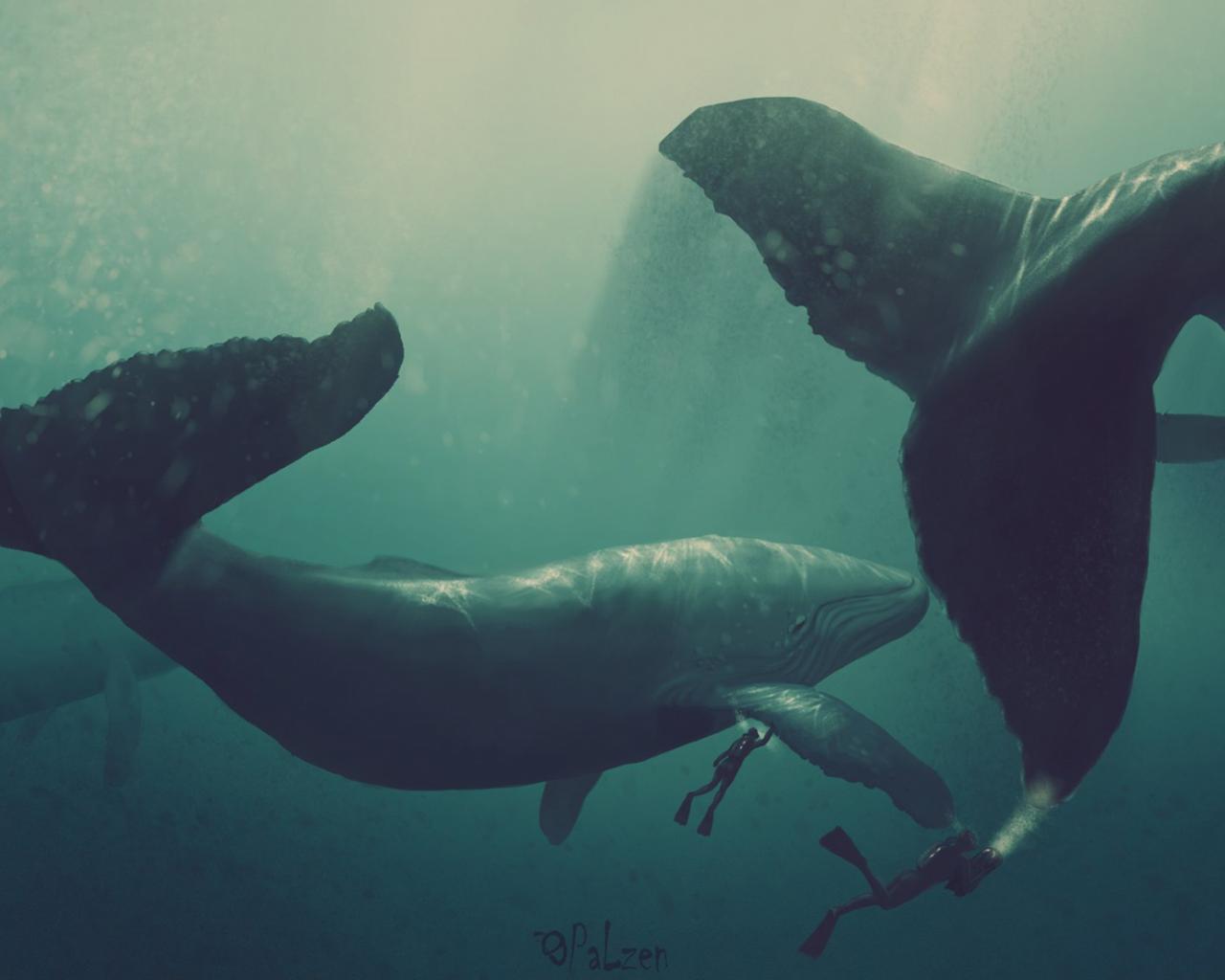 Обои Киты и водолазы