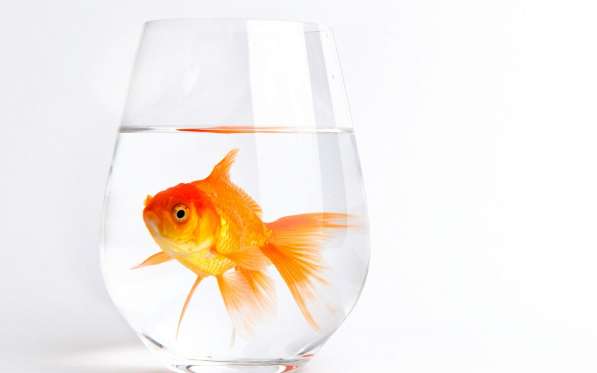 Обои Золотая рыбка в стакане