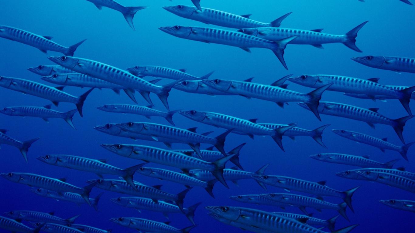 Обои Стая рыб в глубине океана