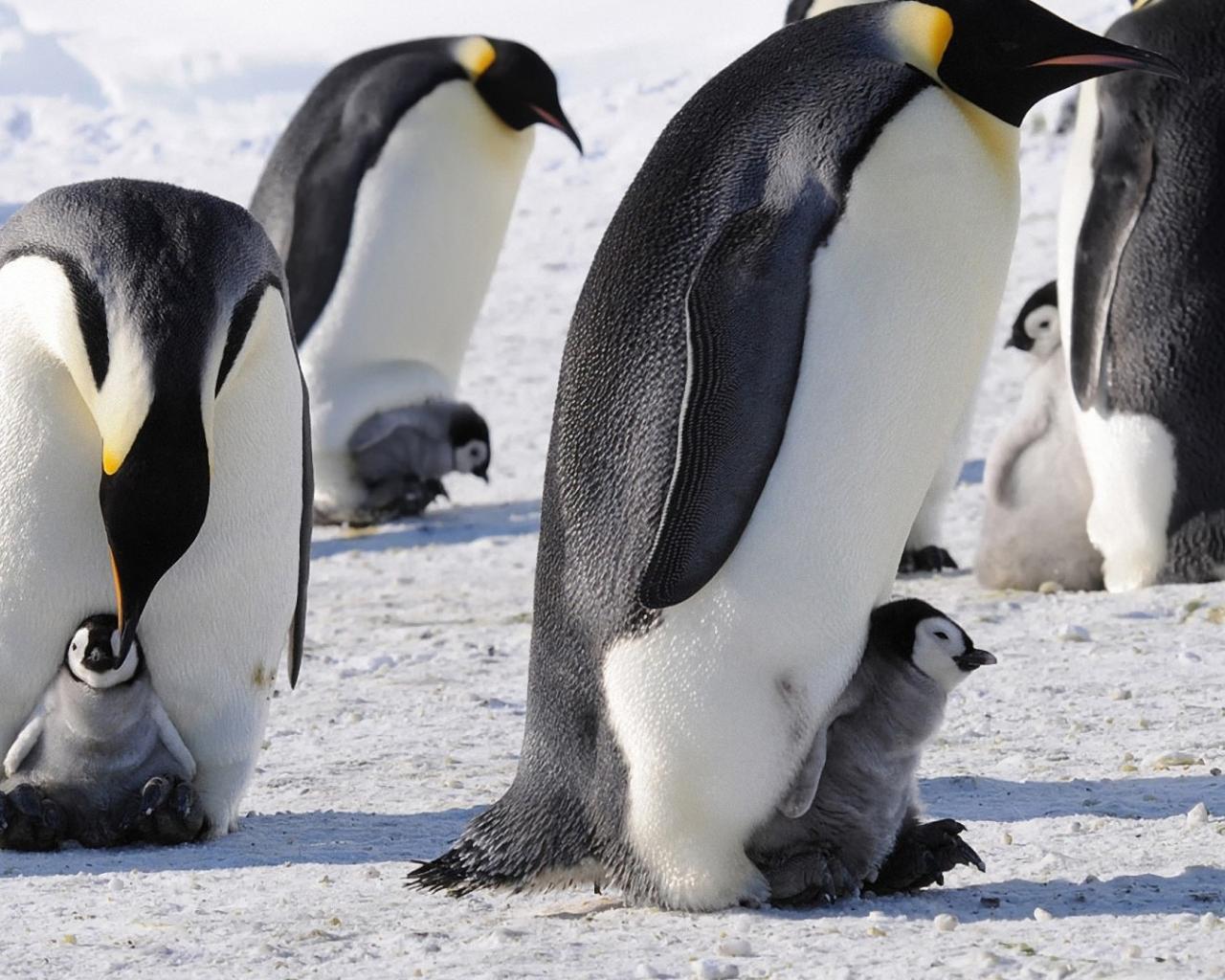 Обои Пингвины с птенцами