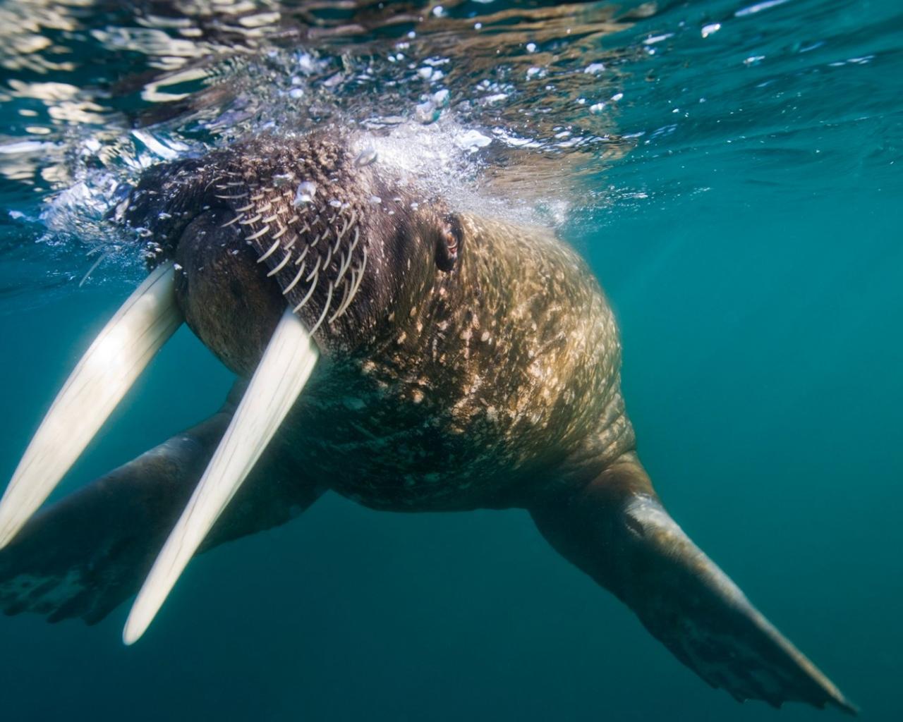 Обои Усатый морж под водой