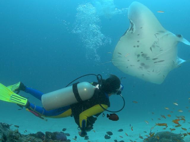 Обои Дайвер и скат