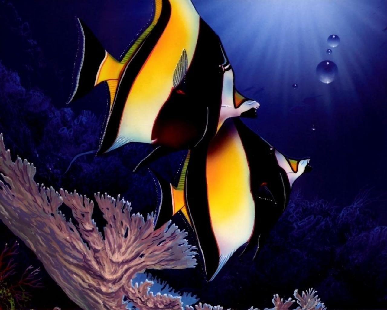 » Обои Две полосатые рыбы