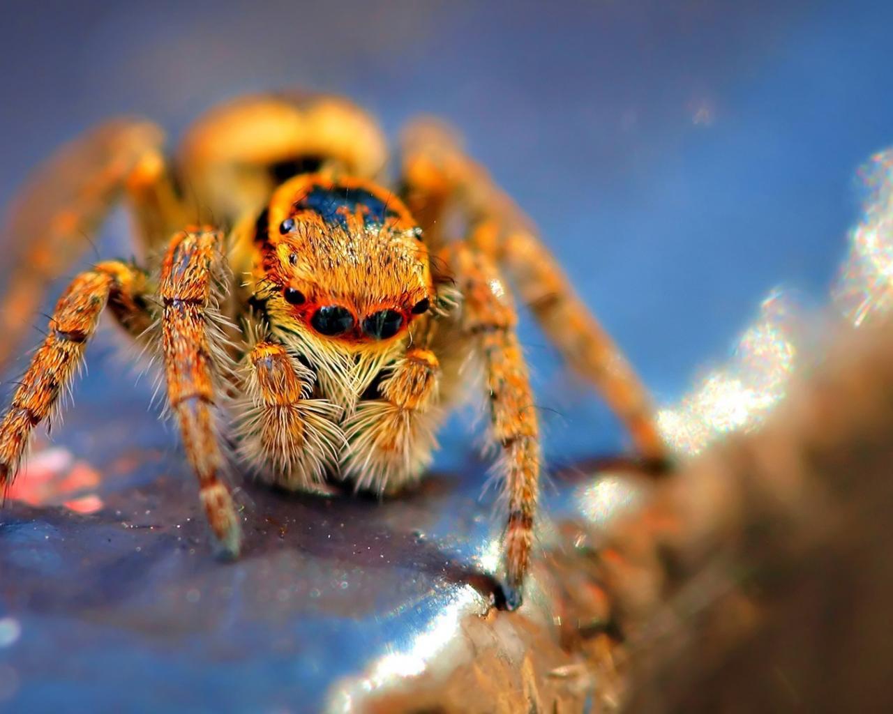 Обои Оранжевый мохнатый паук