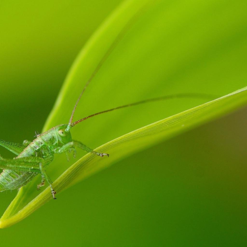 Обои Зеленый кузнечик маскируется на листе