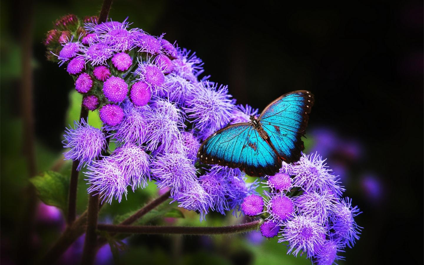 Обои Голубая бабочка с черной каймой на крыльях