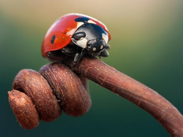 Обои Божья коровка на засохшем ростке
