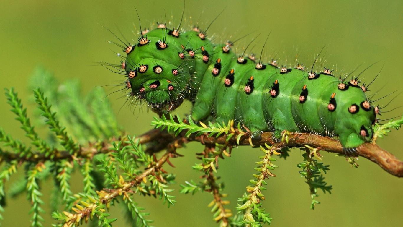 Обои Жирная зеленая гусеница