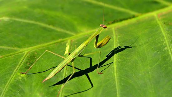 Обои Зеленый богомол на зеленом листике