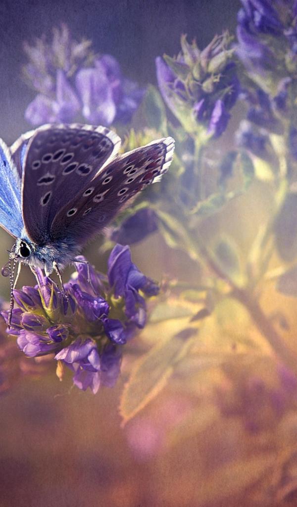 Обои Сиреневая бабочка на лаванде