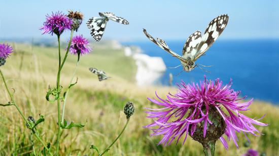 Обои Пестрые бабочки у полевых сорняков