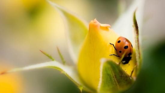 Обои Божья коровка на бутоне желтой розы