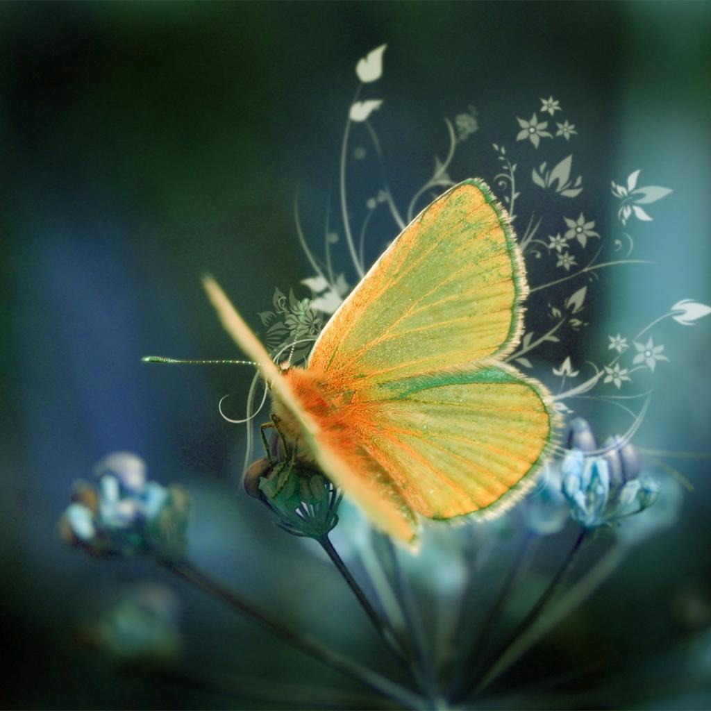 Обои Желтая пушистая бабочка