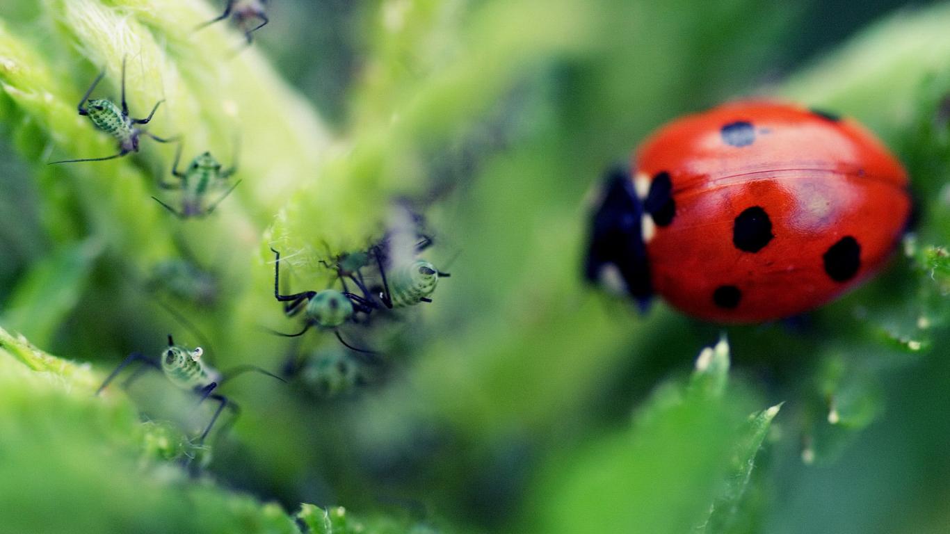 Обои Божья коровка и тля