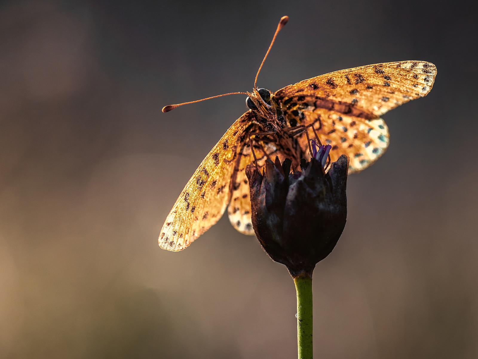 Обои Бабочка на стебле цветка