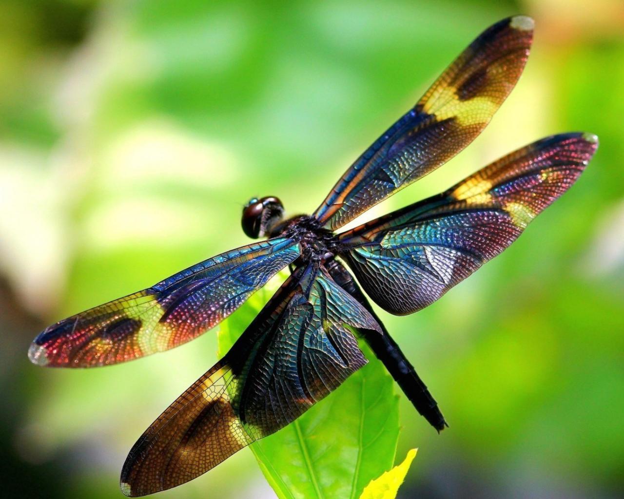 Обои Стрекоза на листике