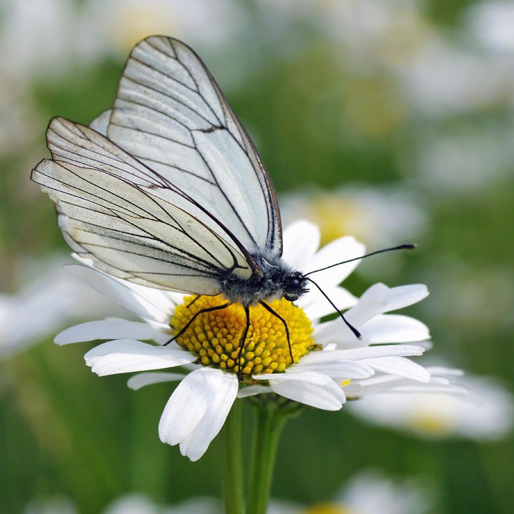 Обои Белая бабочка на ромашке