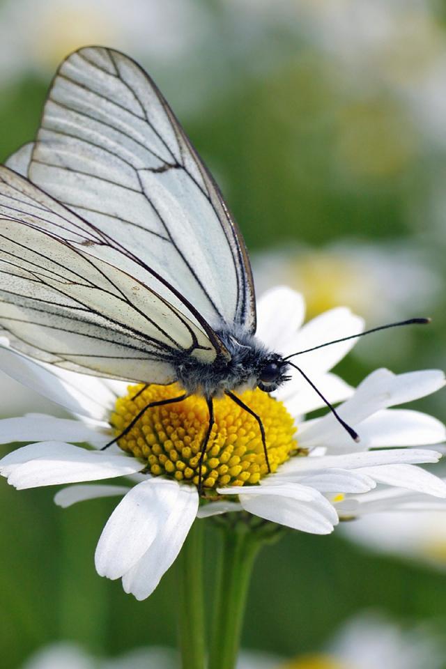 Обои Белая бабочка на ромашке
