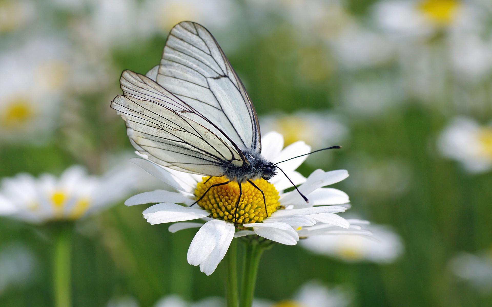 Обои Белая бабочка на ромашке